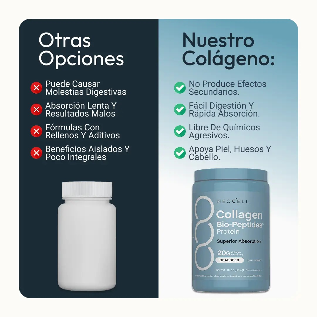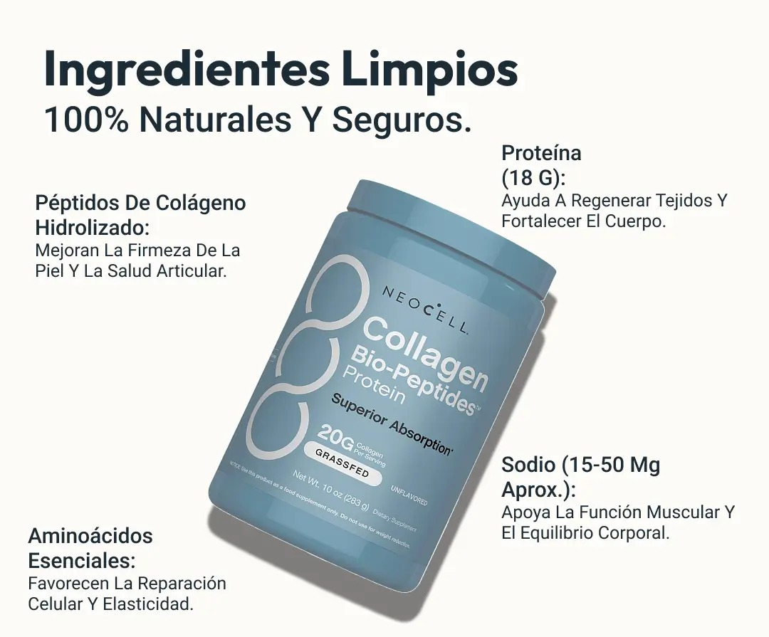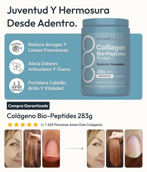Fórmula con bio-péptidos de colágeno diseñada para una mejor absorción y aprovechamiento en el organismo.